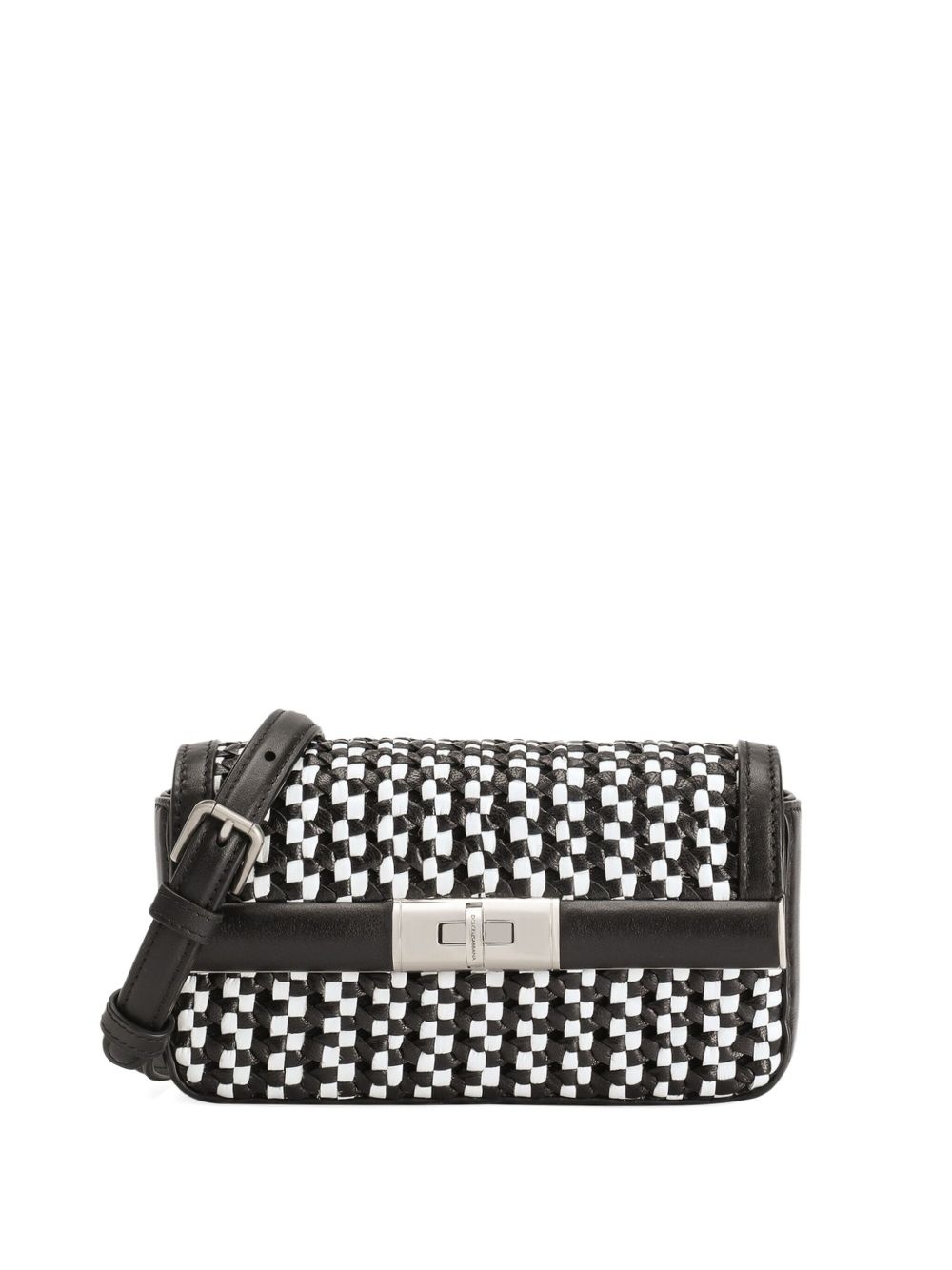 braided shoulder bag Highlights - Black - Clasp fastening - Adjustable detachable shoulder strap - Internal logo stamp Made in Italy Composition Lining: Cotton 100% Outer: Goat Skin 70%, CALFSKIN 30% SIZE & FIT Measurement DEPTH 1.75 in(4.4 cm) HEIGHT 3.74 in(9.5 cm) WIDTH 7.15 in(18.1 cm)