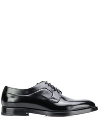 brushed Derby shoes Looking your best means perfecting the look from head to toe. Making that an easy accomplishment, Dolce & Gabbana have designed these brushed calfskin Derby shoes for an effortless-smart look you'll always be able to achieve. Highlights - Black - Calfskin - Brushed finish - Almond toe - Front lace-up fastening - Branded insole Made in Italy Composition Lining: CALFSKIN 80%, Goat Skin 10%, Silk 5%, Viscose 5% Sole: Leather 100% Outer: CALFSKIN 100% SIZE & FIT Measurement HEEL 0.98 in(2.5 cm) Sole height 0.39 in(1 cm)