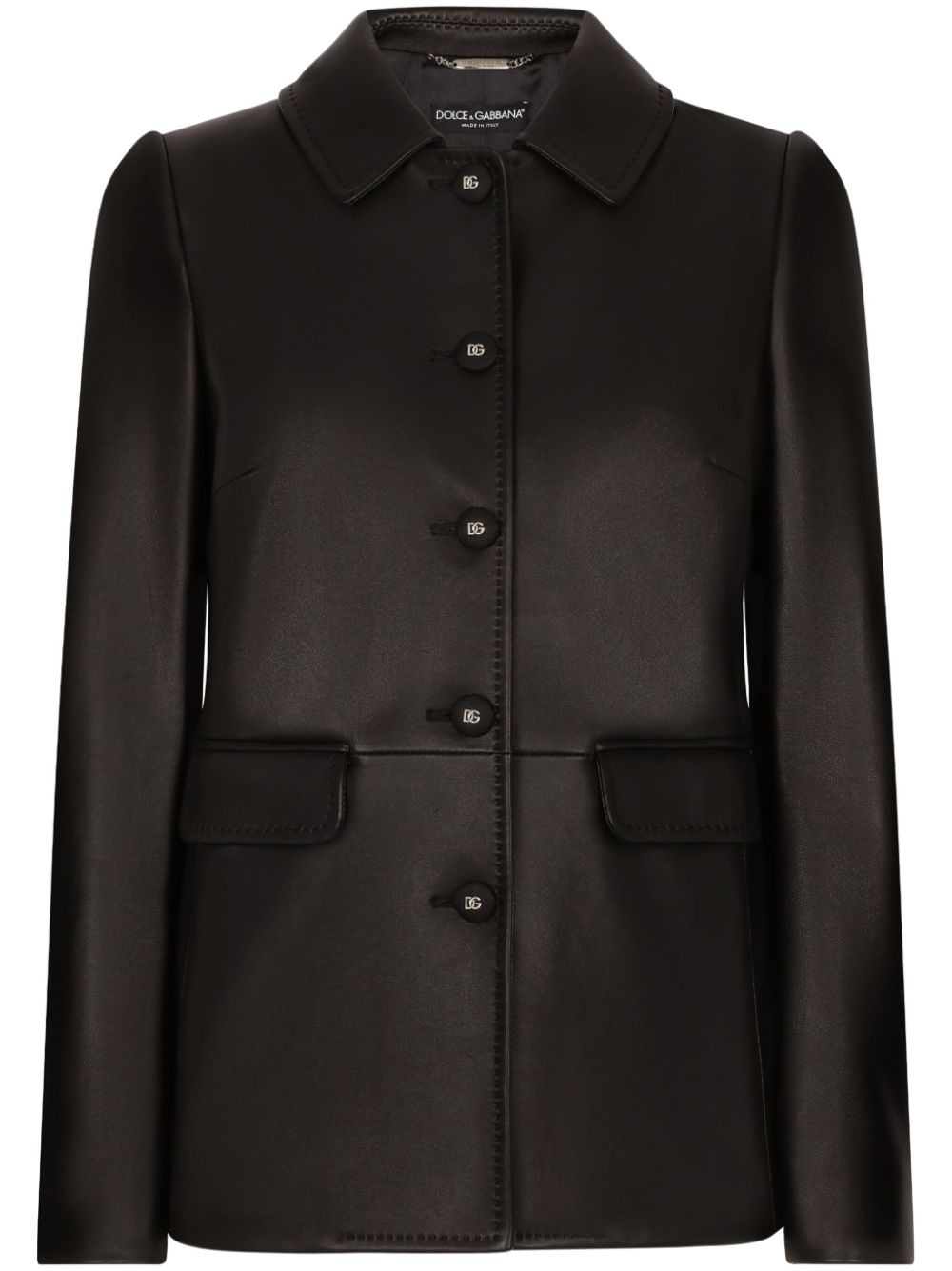 button-embossed leather jacket Highlights - Black - Lambskin - Logo-embossed buttons - Classic collar - Front button fastening - Long sleeves - Two front flap pockets - Straight hem Made in Italy Composition Lamb Skin 100% Washing instructions Specialist Cleaning