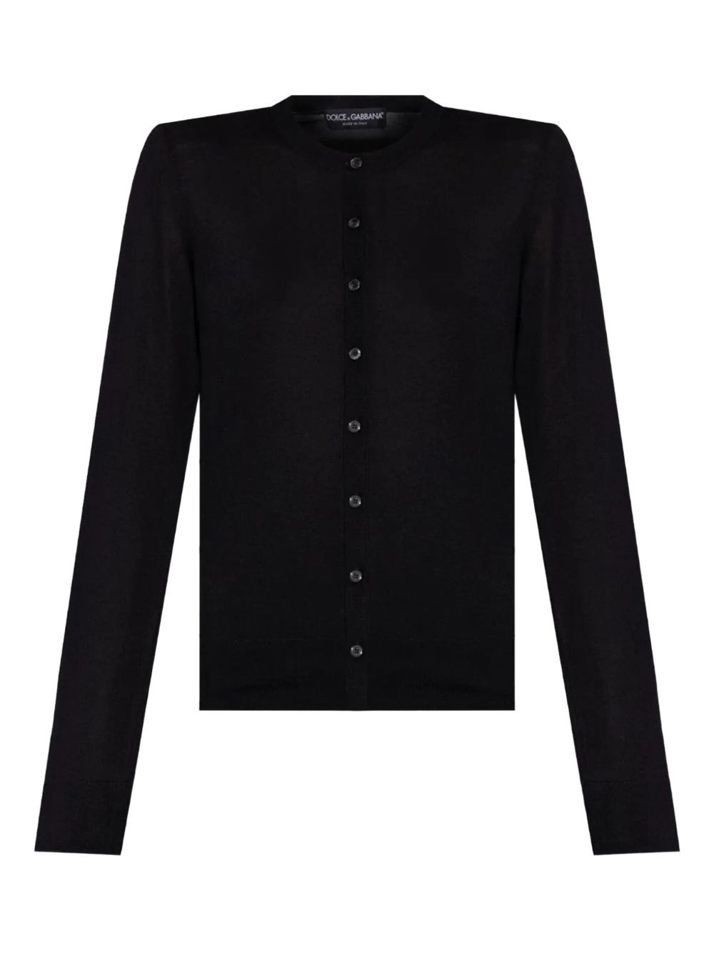 DNA button-up cardigan Highlights - Black - Cashmere-silk blend - Front button fastening - Long sleeves - Round neck - Straight hem - Internal logo patch Made in Italy Composition Cashmere 70%, Silk 30%