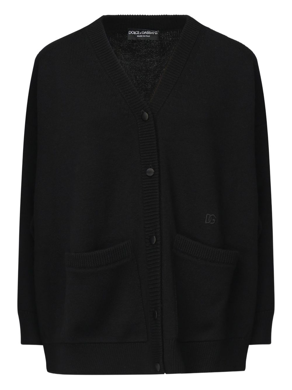 buttoned patch-pocket cardigan Highlights - Black - Button fastening - Patch pockets - Logo detail - Ribbed trims - V-neck Made in Italy Composition Virgin Wool 100% Washing instructions Read Manufacturer Guidelines