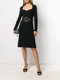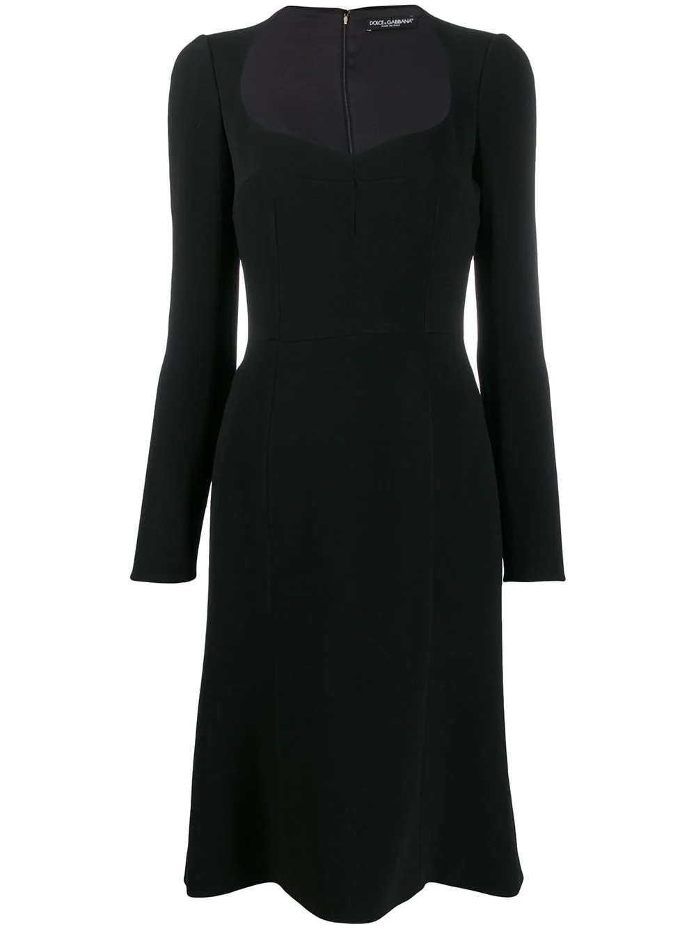 Cady midi dress Forget about the LBD. This season it's all about the CMD: the Cady midi dress from Dolce & Gabbana. To be honest all these acronyms are getting a little hard to keep up with... Highlights - Black - Silk-blend - Sweetheart neck - Long sleeves - Mid-length - Concealed rear fastening Made in Italy Composition Lining: Silk 94%, Spandex/Elastane 6% Outer: Viscose 51%, Acetate 48%, Spandex/Elastane 3% Viscose 91%, Spandex/Elastane 6% SIZE & FIT Model measurements Height 5 ft 10 in(1.77 m) Bust/Chest 35.03 in(89 cm) Hips 36.22 in(92 cm) Waist 25.98 in(66 cm) FittingInformation This piece fits true to size. We recommend you get your regular size Designed for a close fit at the bust, waist and hips Made with a mid-weight fabric Washing instructions Dry Clean Only
