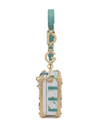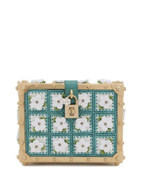 Dolce Box raffia top-handle bag Highlights - Teal green/white - Calf leather - Hard square body - Crochet panelling - Floral applique - Gold-tone hardware - Adjustable detachable crocodile-embossed shoulder strap - Padlock fastening - Main compartment - Internal card slot - Internal logo plaque Made in Italy Composition Outer: Viscose 80%, CALFSKIN 15%, Cotton 5% Lining: CALFSKIN 90%, Poplar 10%