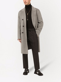 double-breasted cashmere coat Highlights - Light grey - Cashmere - Slub texture - Dart detailing - Peak lapels - Double-breasted button fastening - Long sleeves - Chest welt pocket - Two side flap pockets - Knee-length Made in Italy Composition Cashmere 100%