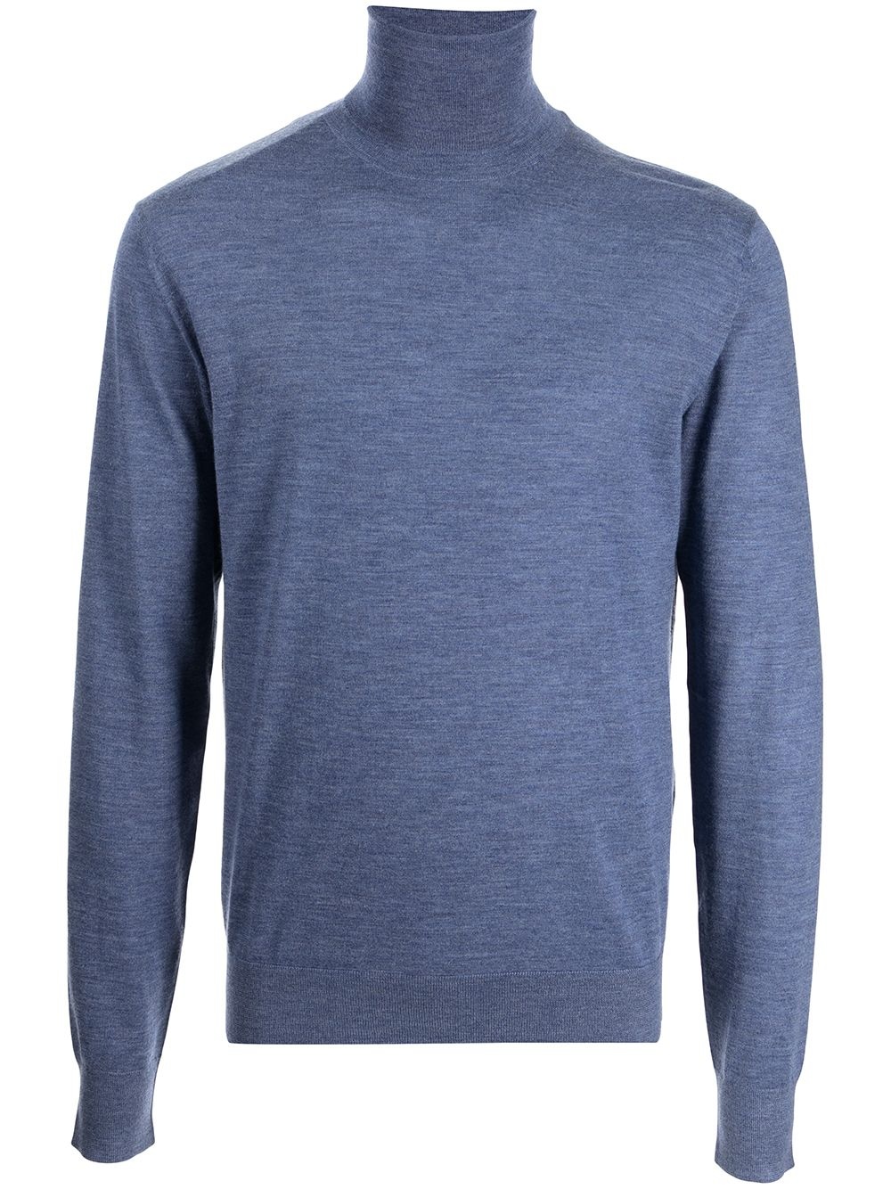 cashmere turtleneck jumper fog blue cashmere fine knit roll neck long sleeves ribbed cuffs ribbed hem Made in Italy Composition Cashmere 100% SIZE & FIT Model measurements Height 6 ft 0 in(1.84 m) Bust/Chest 35.43 in(90 cm) Hips 35.82 in(91 cm) Waist 28.74 in(73 cm) Measurement CHEST 37.79 in(96 cm) SLEEVE LENGTH 35.03 in(89 cm) Shoulder Width 16.14 in(41 cm) FittingInformation This piece fits true to size. We recommend you get your regular size Cut for a slim fit Made with a mid-weight fabric Washing instructions Dry Clean Only