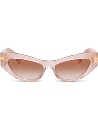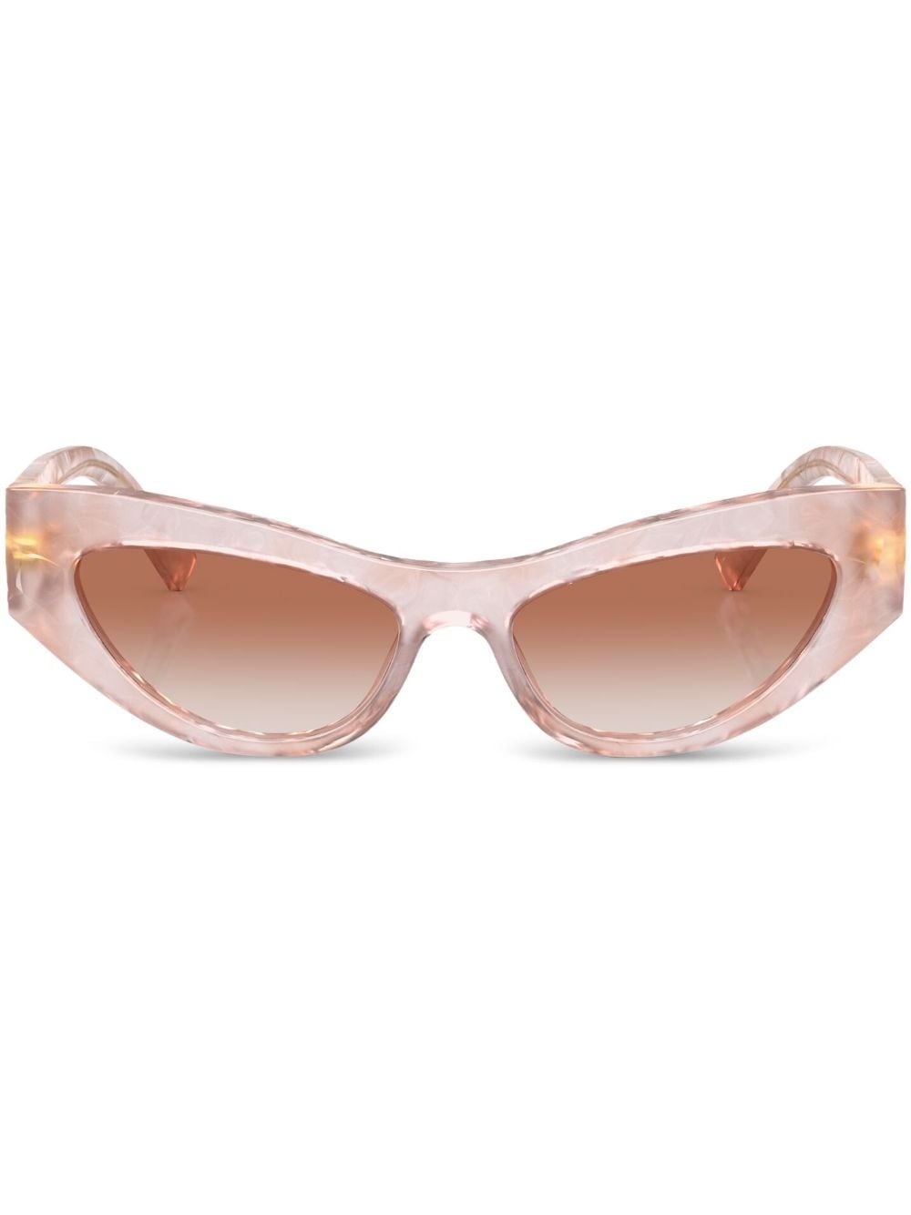 cat-eye frame sunglasses Dolce & Gabbana's exuberant style is on display in these sunglasses. Imagined in pink with a pearlescent effect, the cat-eye silhouette is enhanced by way of a gold-tone 'DG' plaque at the oversized arms. Highlights - Pink - Acetate - Pearlescent finish - Cat-eye frame - Gradient lenses - Logo plaque at the arm - Straight arms - Curved tips - These glasses come with a protective case. Made in Italy Composition Acetate 100% SIZE & FIT Measurement Arm Length 5.7 in(14.5 cm) Bridge Width 0.62 in(1.6 cm) Lens Diameter 2.04 in(5.2 cm) Total Width 5.31 in(13.5 cm)