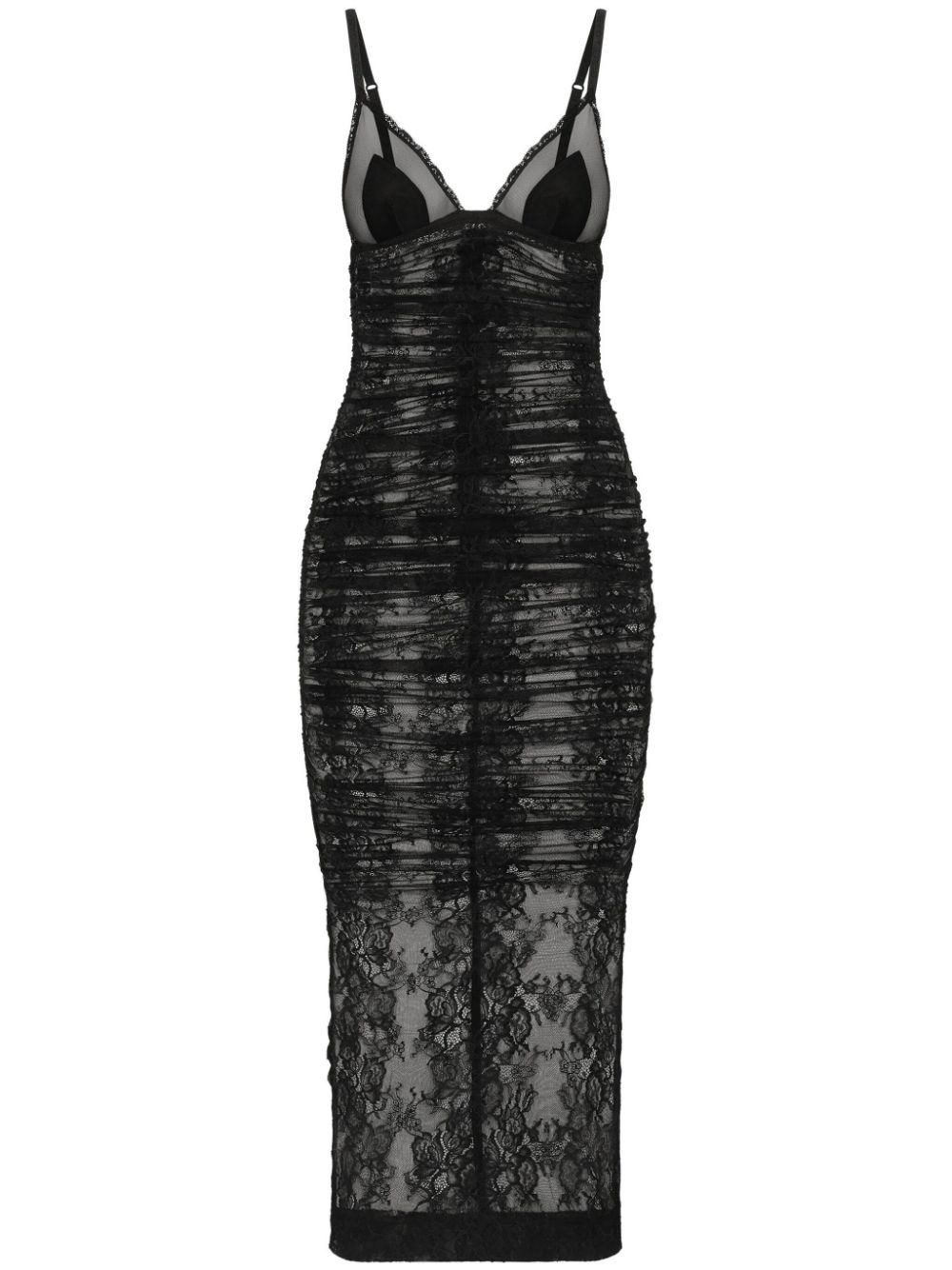 Calf-length stretch Chantilly lace slip dress