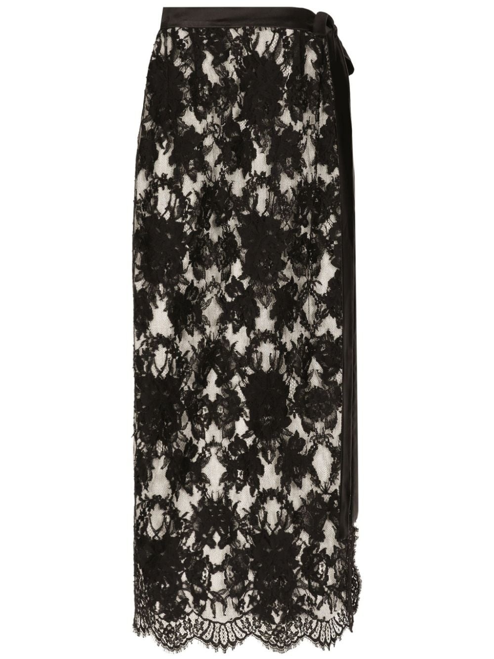 chantilly-lace midi skirt Highlights - Black - Cotton blend - Chantilly lace - Side tie fastening - Unlined - Scallop hem - Mid-length Made in Italy Composition Cotton 68%, Polyamide 22%, Silk 10%