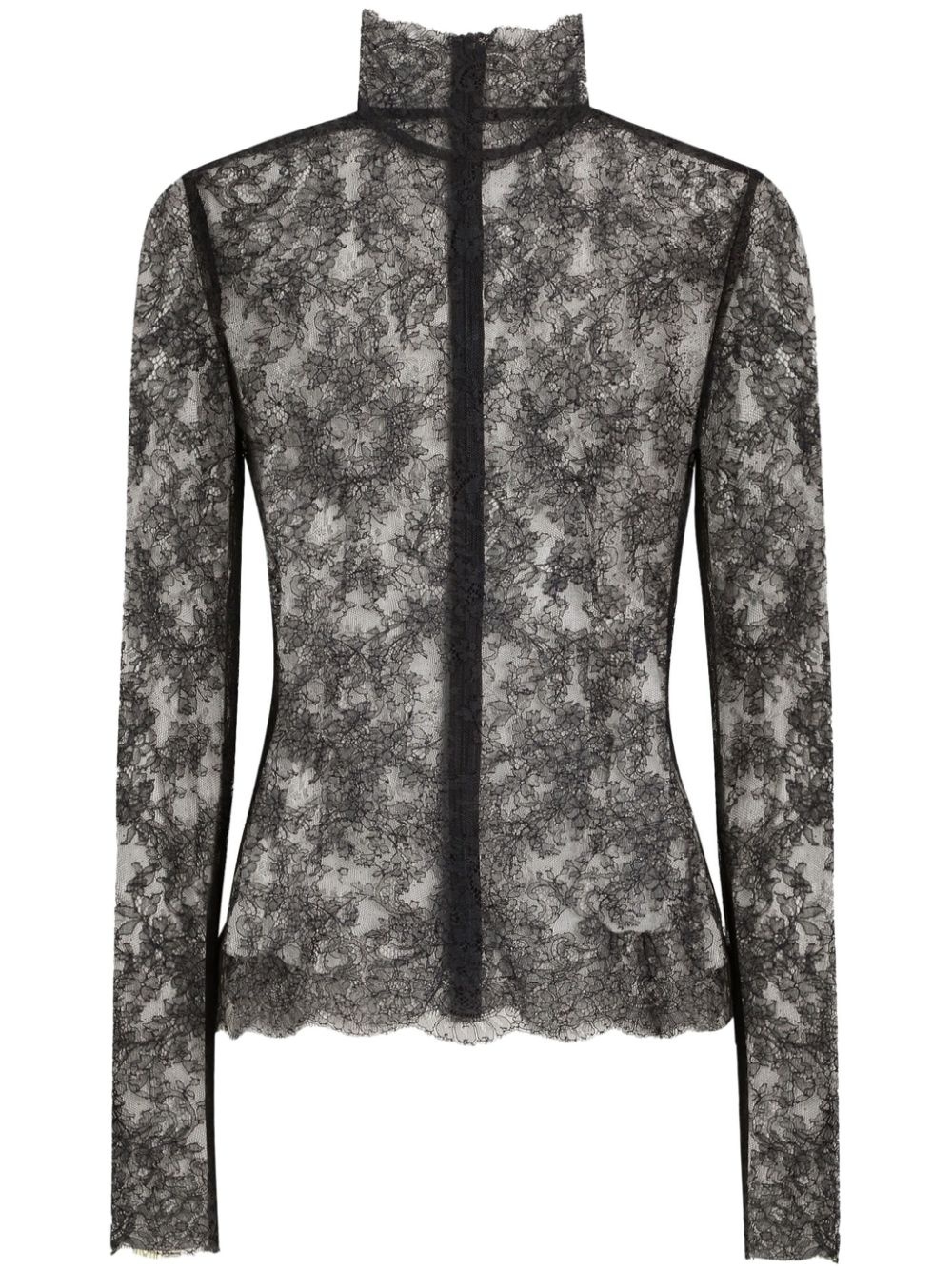 chantilly-lace top Highlights - Dark grey - Rear zip fastening - High neck - Scallop edge - Long sleeves Made in Italy Composition Polyester 71%, Viscose 29%