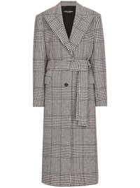 Single-breasted houndstooth check coat with belt