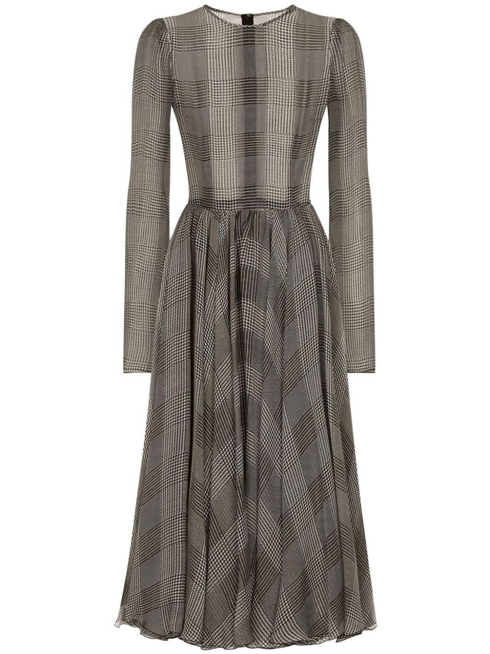 check-pattern dress Highlights - Ash grey - Stretch-silk - Semi-sheer construction - Prince of wales check pattern - Long sleeves - Round neck - Rear zip fastening - Mid-length Made in Italy Composition Lining: Silk 91%, Spandex/Elastane 9% Outer: Silk 100%