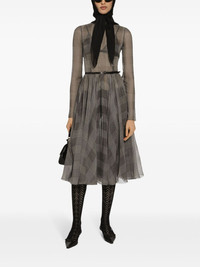 Chiffon calf-length circle skirt with glen plaid print