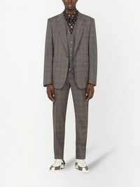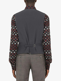 glen-plaid wool waistcoat Add an extra layer to your style credentials. This grey check pattern waistcoat from Dolce & Gabbana is the finishing detail you've been looking for. It will make all the difference. Highlights - Grey - Virgin wool blend - Front button fastening - Two front welt pockets - Adjustable strap to the rear Made in Italy Composition Virgin Wool 100% Washing instructions Dry Clean Only
