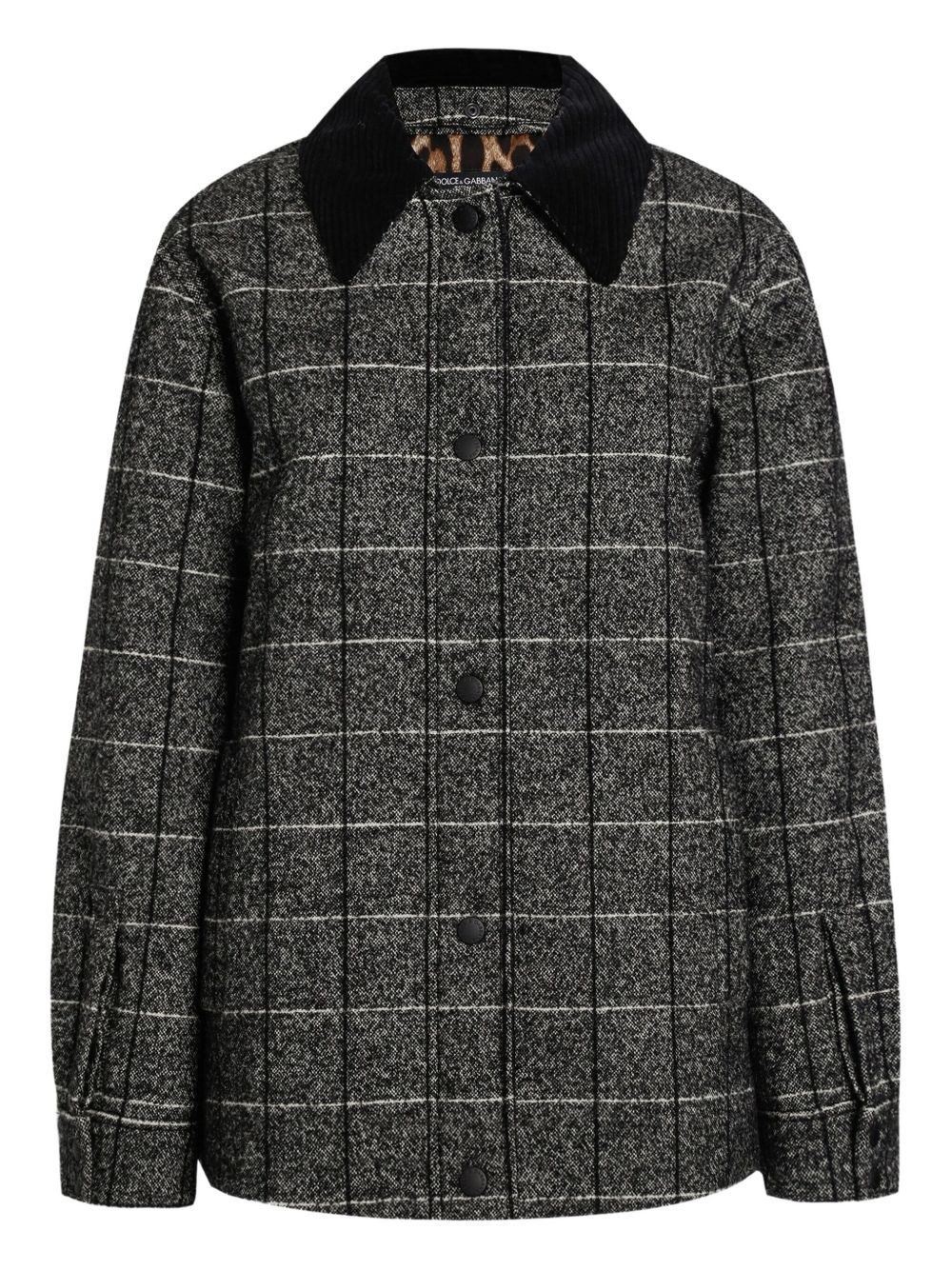 checked corduroy-collar jacket Highlights - Black - Check pattern - Corduroy collar - Side pockets - Long sleeves Made in Italy Composition Virgin Wool 43%, Wool 31%, Polyamide 15%, Cotton 10%, Elastane 1% Washing instructions Read Manufacturer Guidelines
