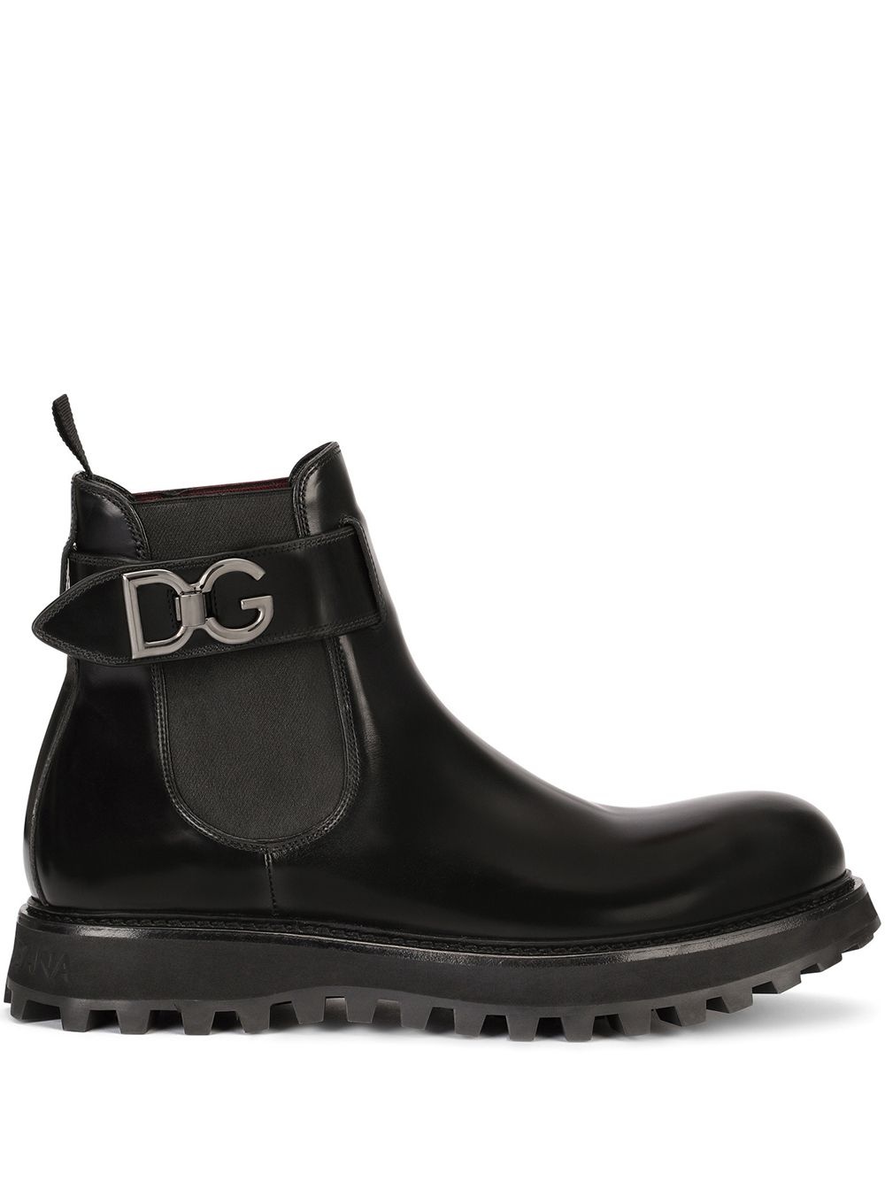 Chelsea belted boots Dolce & Gabbana presses refresh on the classic Chelsea boot style. This black calf leather pair has all the components of the traditional design but updated with a belted detail featuring a logo plaque. Made in Italy Composition Outer: Calf Leather 100% Sole: Rubber 100% Lining: Calf Leather 78%, Lamb Skin 13%, Goat Skin 9%