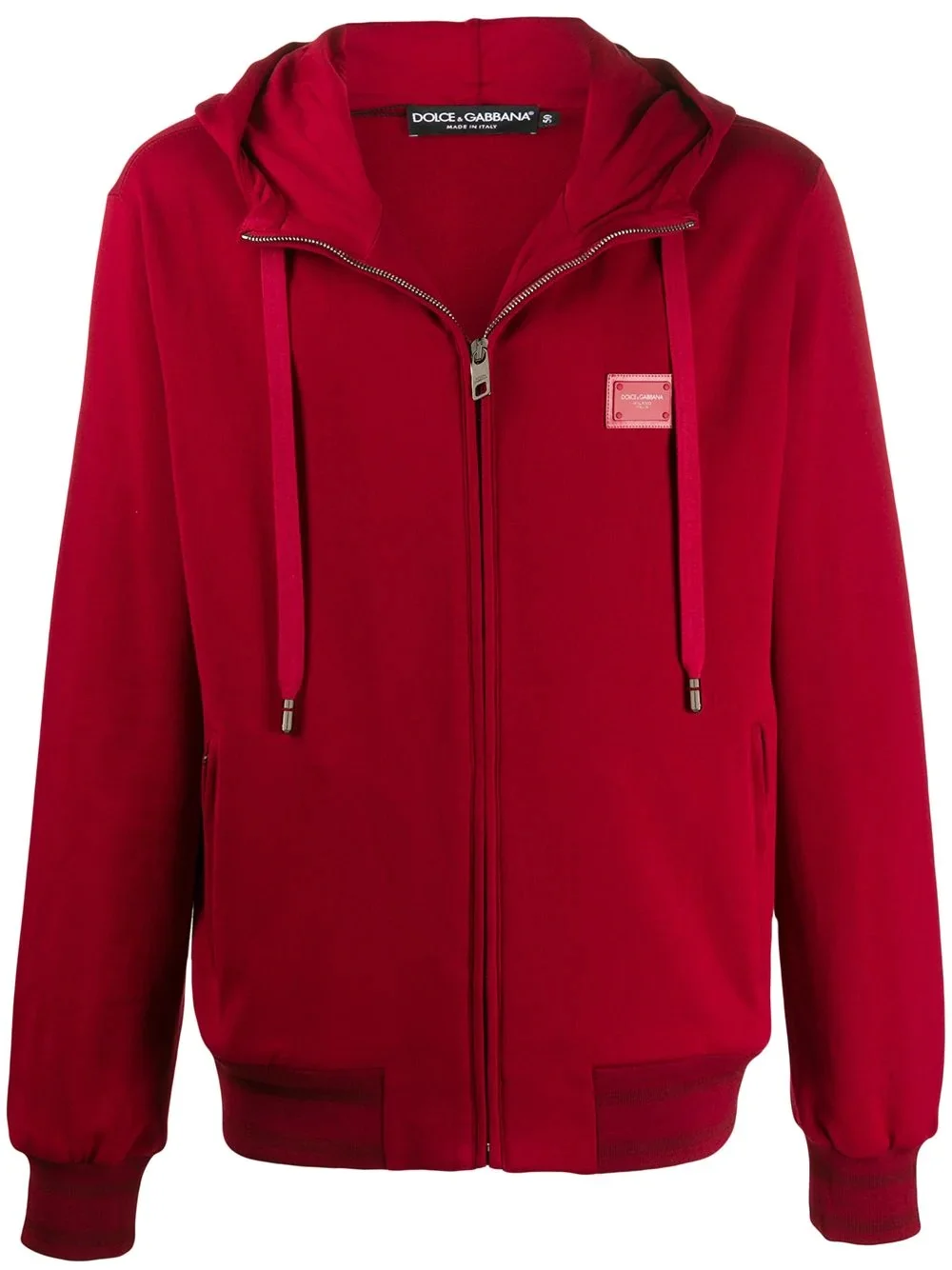 logo-tag zip-up hoodie Highlights - Are you seeing red? you will be if you let this red cotton chest logo zipped hoodie from dolce & gabbana go. make it yours. featuring a drawstring hood, long sleeves, a front zip fastening, a logo to the chest, side pockets and a ribbed hem and cuffs. Made in Italy Composition Outer: Cotton 100% Lining: Cotton 100% SIZE & FIT Model measurements Height 6 ft 2 in(1.87 m) Bust/Chest 37.79 in(96 cm) Hips 37.79 in(96 cm) Waist 30.31 in(77 cm) FittingInformation This piece fits true to size. We recommend you get your regular size Cut for a relaxed fit Made with a mid-weight fabric Washing instructions Machine Wash