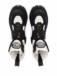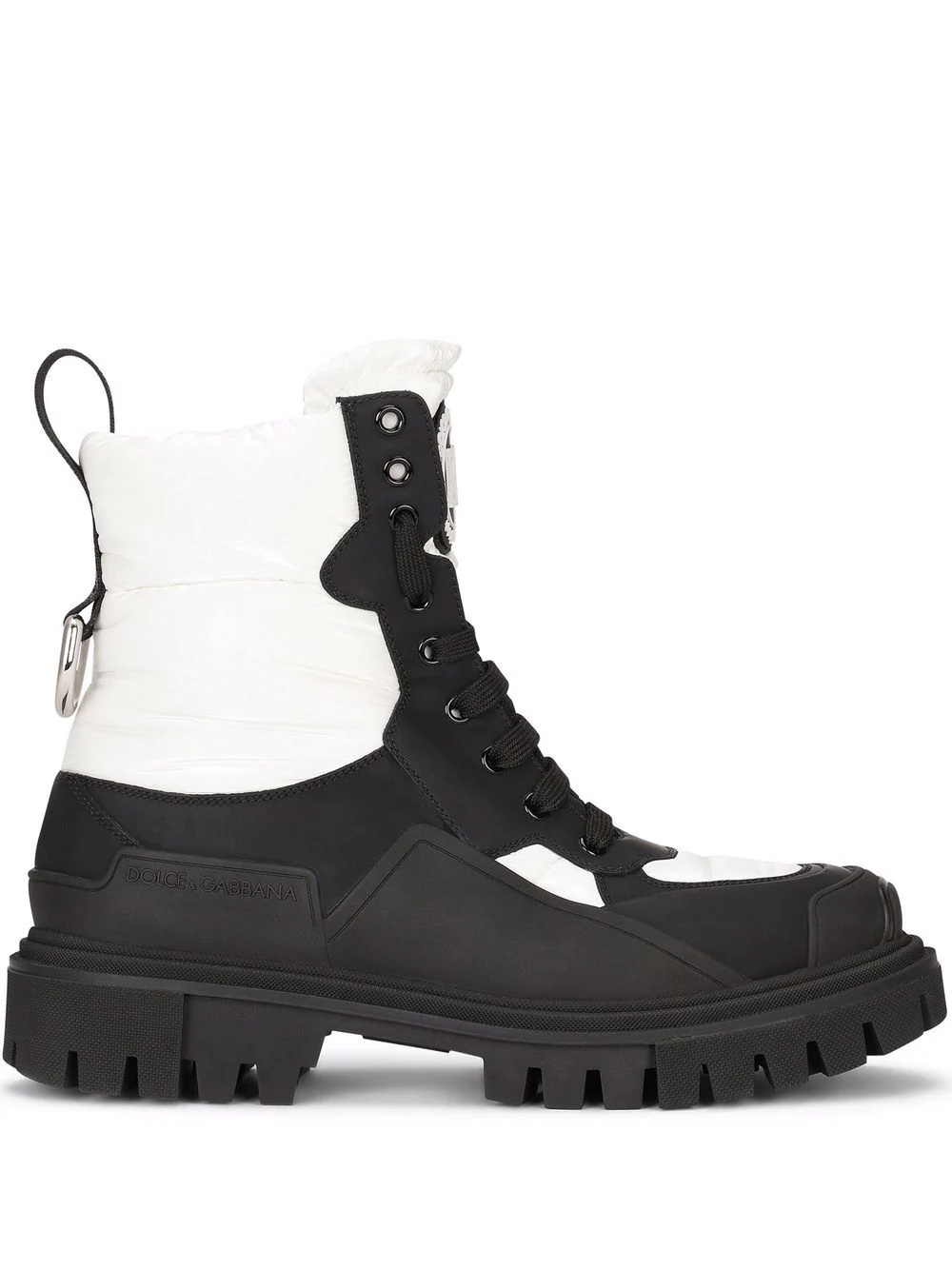 chunky sole ankle boots With Dolce & Gabbana, expect high-octane designs with an elegant edge. A fine example are these ankle boots, which feature a chunky rubber block heel and lace-up design for a bold statement. Highlights - Black/white - Logo patch at the tongue - Round toe - Chunky rubber sole - Branded insole - Front lace-up fastening - Ankle-length - Pull-tab at the heel Made in Italy Composition Leather 100%