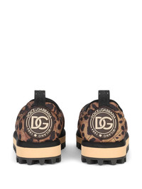 Leopard-print nylon slip-ons