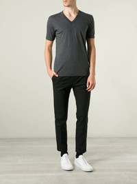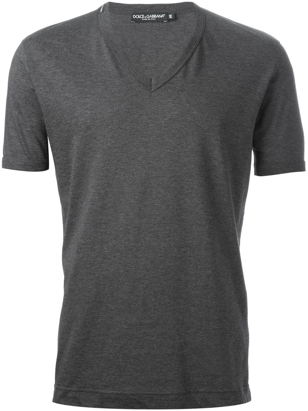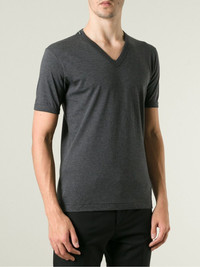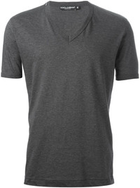 classic T-shirt Grey cotton classic T-shirt from Dolce & Gabbana featuring a v-neck, short sleeves and a logo patch at the neckline. Made in Italy Composition Cotton 100% SIZE & FIT Model measurements Height 6 ft 1 in(1.85 m) Bust/Chest 35.43 in(90 cm) Hips 39.37 in(100 cm) Waist 29.92 in(76 cm) Washing instructions Machine Wash
