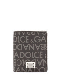 coated jacquard bi-fold card holder Highlights - Black/grey - Coated finish - Monogram jacquard - Logo plaque - Bi-fold design - Internal card slots Made In Italy Composition Outer: Cotton 50%, Polyurethane 30%, Polyester 20% Lining: CALFSKIN 70%, Viscose 30%