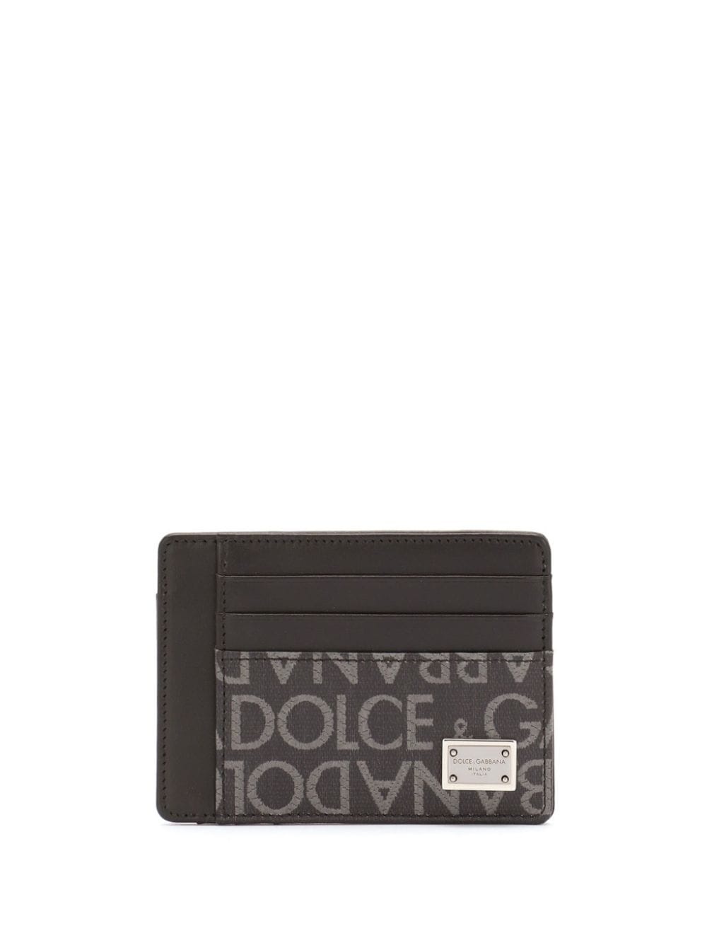 coated jacquard card holder Highlights - Black/grey - Coated finish - Monogram jacquard - Logo plaque - Card slots Made in Italy Composition Outer: Cotton 50%, Polyurethane 30%, Polyester 20% Lining: CALFSKIN 70%, Viscose 30%