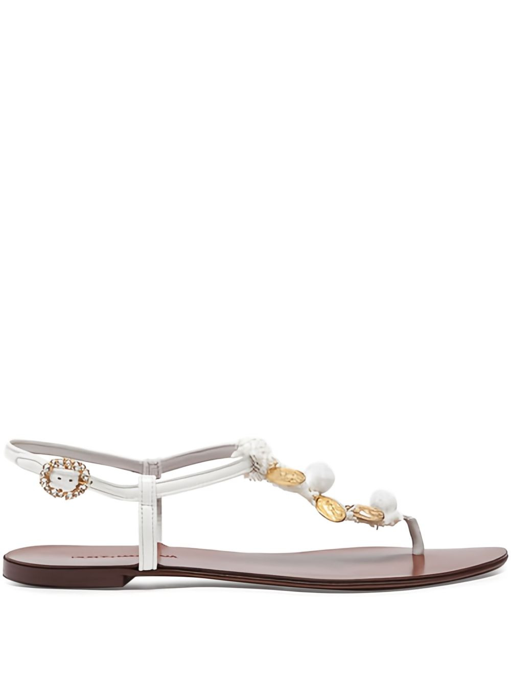 bead-embellished sandals Highlights - White - Buckle-fastening ankle strap - Branded footbed - Almond open toe - Flat sole Made in Italy Composition Outer: Viscose 55%, Cotton 20%, Calf Leather 10%, Polyurethane 10%, Polyester 5% Sole: Calf Leather 100% Lining: Calf Leather 100% SIZE & FIT Measurement HEEL 0.39 in(1 cm) CIRCUMFERENCE 11.81 in(30 cm)