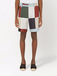 Cotton and linen patchwork shorts