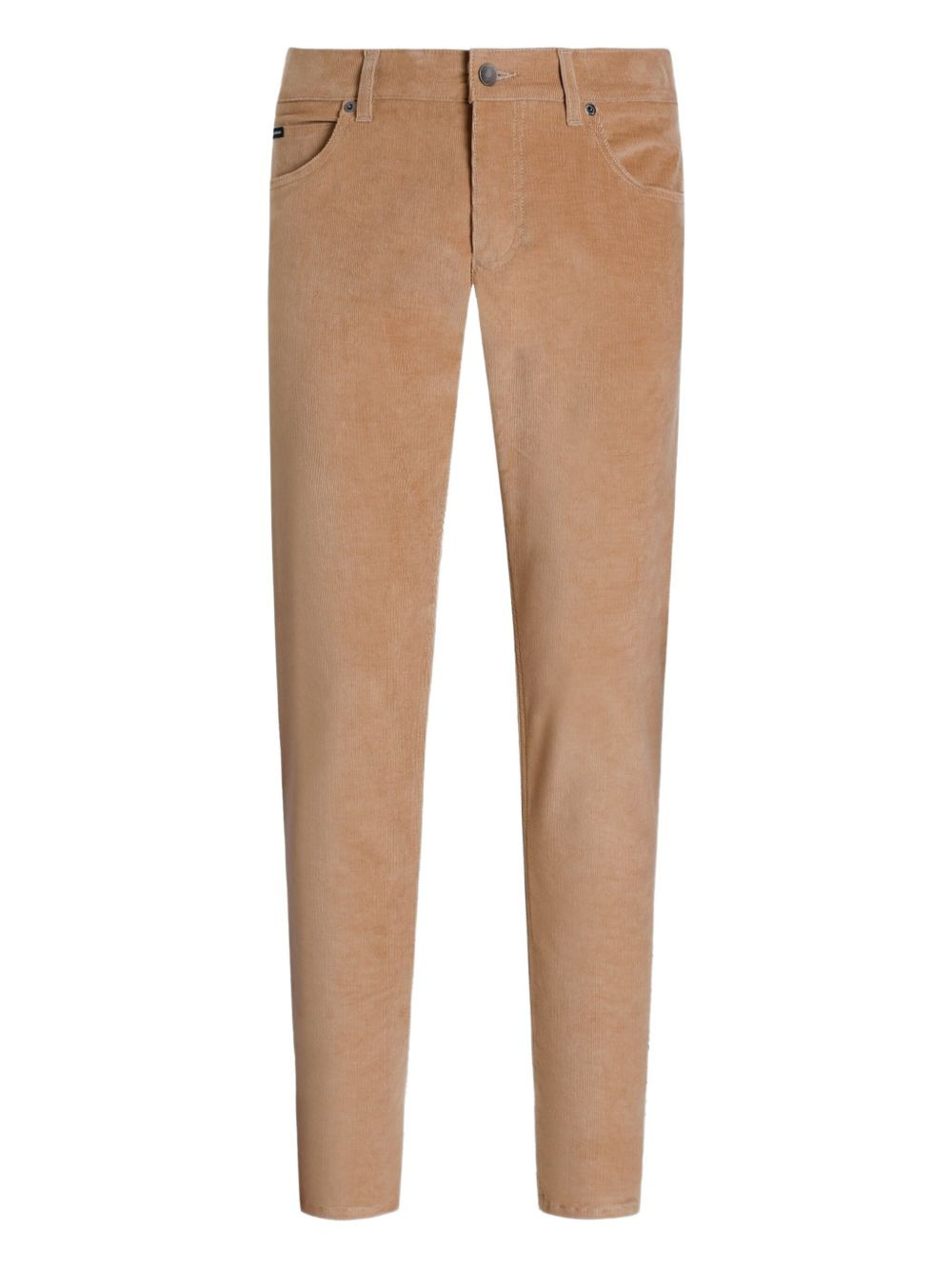 corduroy logo-plaque trousers Highlights - Beige - Corduroy texture - Five-pocket styling - Logo plaque - Button fly - Belt loops Made in Italy Composition Cotton 89%, Cashmere 9%, Elastane 2% Washing instructions Read Manufacturer Guidelines