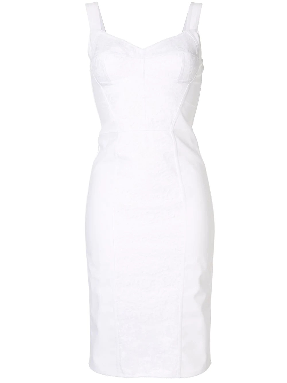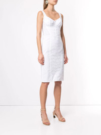 corset bustier dress Heritage tulle and lace have become an intrinsic part of Dolce & Gabbana's exuberantly romantic, feminine collections. This optical white corset bustier dress features shoulder straps, a sweetheart neckline, a fitted silhouette, a knee length and a rear zip and hook-and-eye fastening. Made in Italy Composition Polyamide 87%, Spandex/Elastane 13% SIZE & FIT Model measurements Height 5 ft 10 in(1.77 m) Bust/Chest 31.49 in(80 cm) Hips 34.64 in(88 cm) Waist 23.62 in(60 cm) Measurement HIPS 30.7 in(78 cm) LENGTH 38.97 in(99 cm) WAIST 23.62 in(60 cm) Washing instructions Dry Clean Only