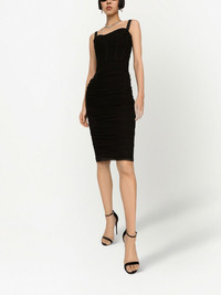 corset-style midi dress black cotton-silk blend gathered detailing corset style sweetheart neck sleeveless knee-length Made in Italy Composition Outer: Silk 64%, Cotton 16%, Elastane 12%, Nylon 8% Lining: Cotton 51%, Nylon 24%, Elastane 20%, Silk 5% SIZE & FIT Measurement HIPS 24.4 in(62 cm) LENGTH 37.79 in(96 cm) WAIST 20.47 in(52 cm) Washing instructions Read Manufacturer Guidelines