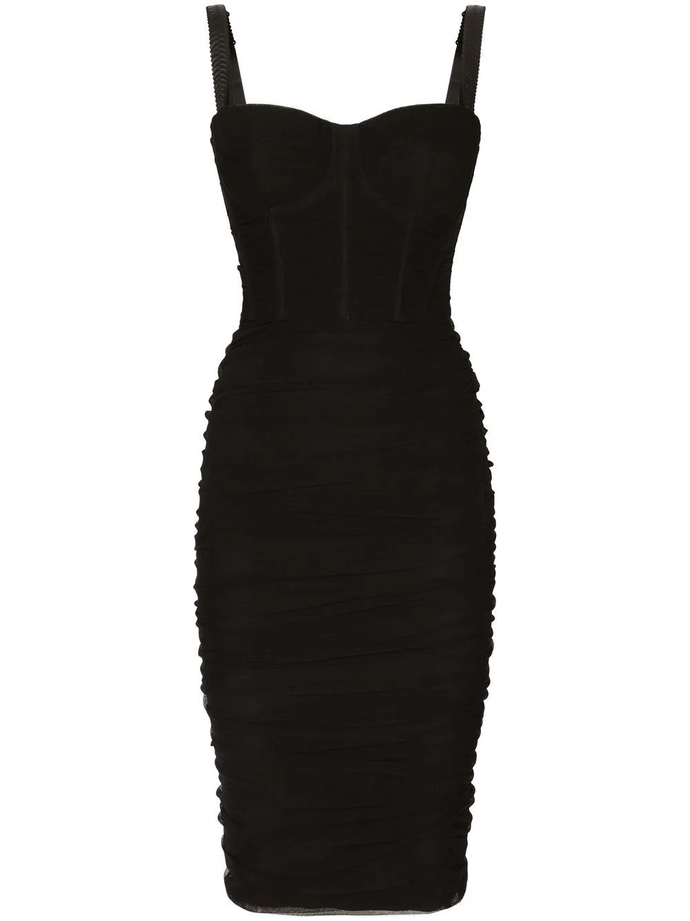 Tulle midi dress with draping and corset