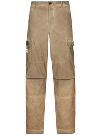 cotton cargo trousers Highlights - Sand beige - Stretch-cotton - Faded effect - Applique logo - Mid-rise - Concealed fly and button fastening - Belt loops - Wide leg - Two side slit pockets - Two side cargo pockets - Two rear flap pockets Made in Italy Composition Cotton 96%, Spandex/Elastane 4%