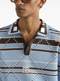 cotton polo shirt Highlights - Blue - Front button placket - Short sleeves - Straight hem - Jacquard logo motif Made in Italy Composition Cotton 100%