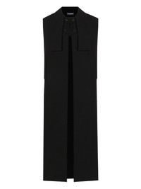 crepe coat Highlights - Black - High collar - Button detailing - Open front design Made in Italy Composition Wool 90%, Silk 8%, Polyester 2% Washing instructions Read Manufacturer Guidelines