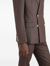 crest-applique blazer Highlights - Earth brown - Double-breasted button fastening - Chest welt pocket - Two side flap pockets - Buttoned cuffs Made in Italy Composition Outer: Linen/Flax 100% Lining: Cupro 100%