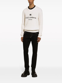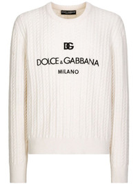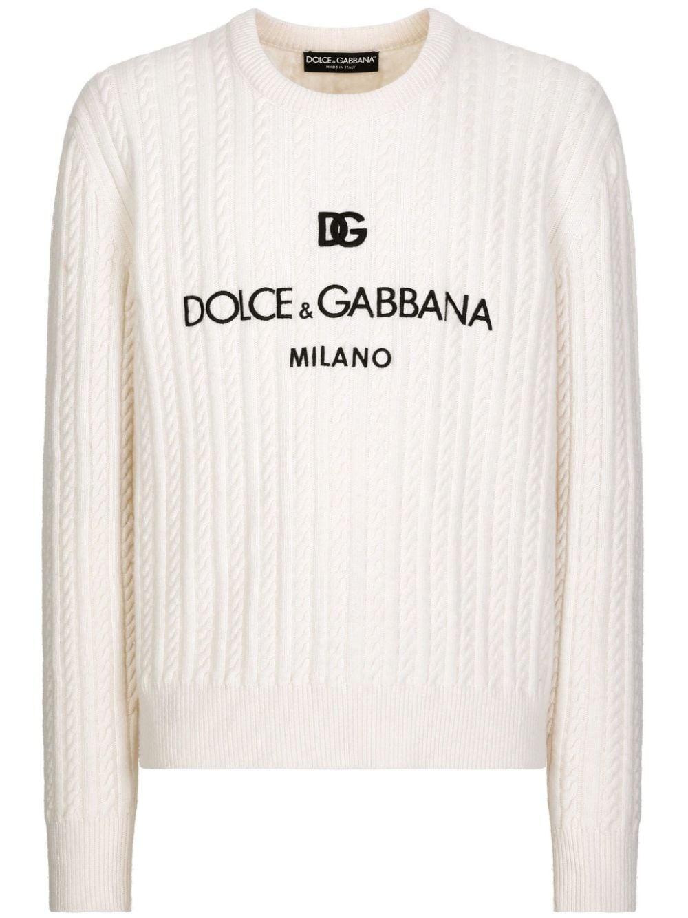 crew-neck cable-knit jumper Highlights - Optical white - Virgin wool - Cable knit - Embroidered logo to the front - Crew neck - Long sleeves - Ribbed cuffs and hem - Straight hem Made in Italy Composition Virgin Wool 100%