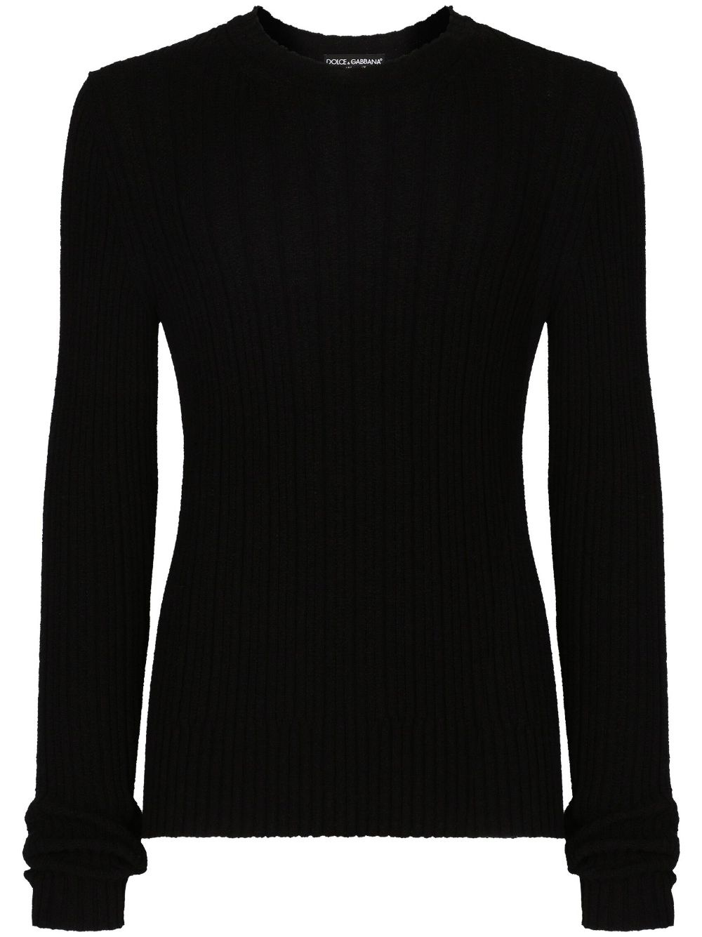 crew-neck ribbed jumper Highlights - Black - Cotton blend - Ribbed knit - Crew neck - Extra-long sleeves - Straight hem Made in Italy Composition Cotton 60%, Rayon 30%, Nylon 10%