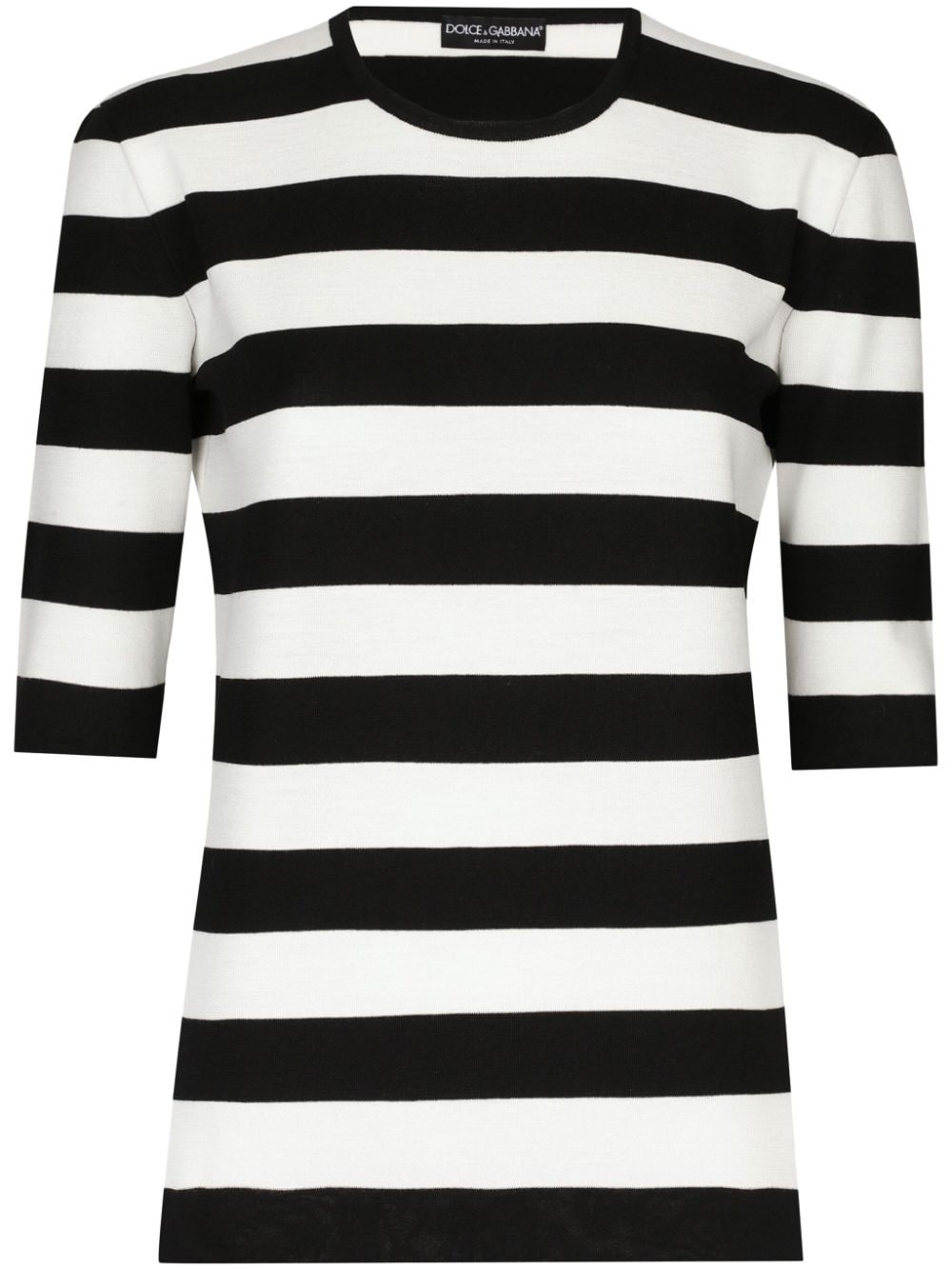crew-neck striped top Highlights - Black/white - Virgin wool - Horizontal stripe pattern - Crew neck - Half-length sleeves - Straight hem Made in Italy Composition Virgin Wool 100% SIZE & FIT FittingInformation Designed for a relaxed fit, this piece allows for comfort and movement when worn