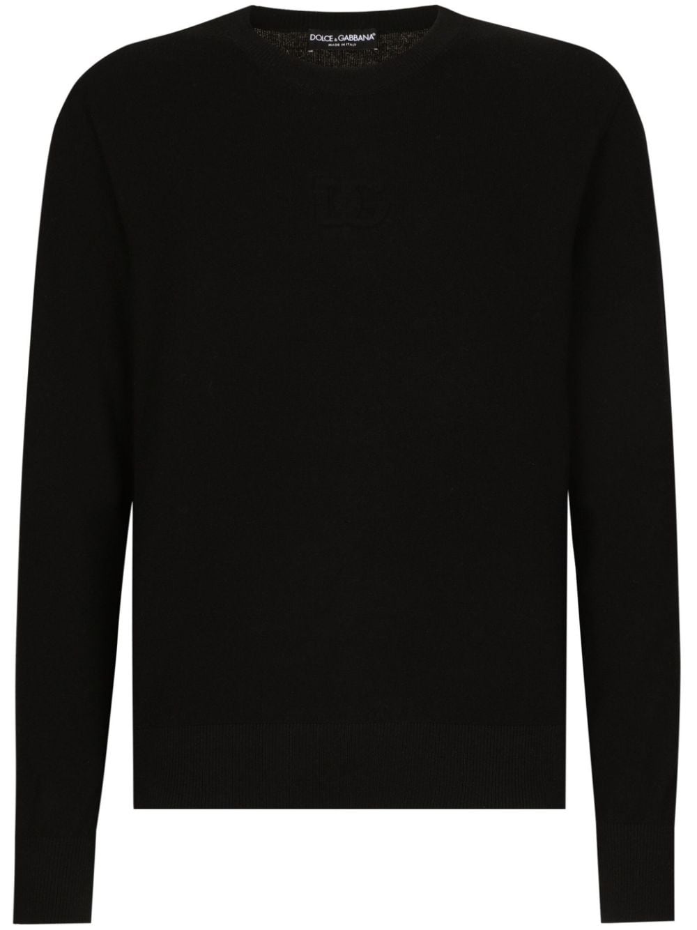 Crew-neck sweater Highlights - Black - Virgin wool-cashmere blend - Knitted construction - Ribbed cuffs and hem - Crew neck Made in Italy Composition Virgin Wool 66%, Cashmere 29%, Polyamide 2%, Polyurethane 2%, Spandex/Elastane 1%