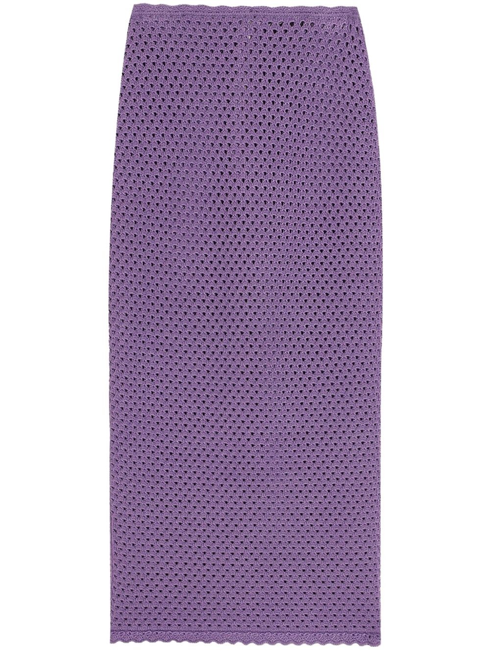 crochet-knit midi skirt Highlights - Purple - Concealed rear zip fastening - Rear slit - Scallop edge Made in Italy Composition Cotton 100%