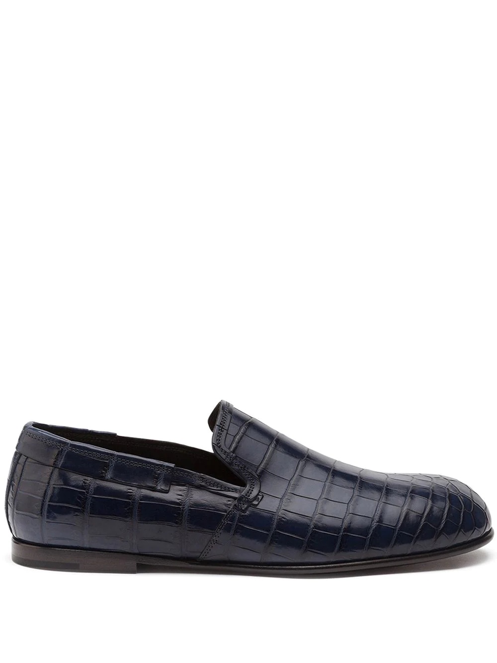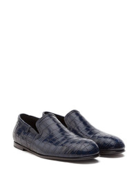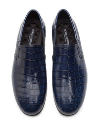 crocodile-embossed leather loafers Time to step up your style. And as the saying goes do it feet first and without hesitation with the help of these statement crocodile leather slip-on shoes from Dolce & Gabbana. Just slip on and head out. Highlights - Blue - Crocodile leather - Crocodile effect - Round toe - Slip-on style - Branded insole - Flat sole - This item comes from our partner boutiques in a variety of countries and cannot be shipped outside its region (either us, uae, or the eu & uk). please check the country of origin in the shipping & free returns tab or your shopping bag to make sure it can be delivered to your location. Made in Italy Composition Outer: Crocodile Leather 100% Sole: Leather 100% Lining: Satin 100%