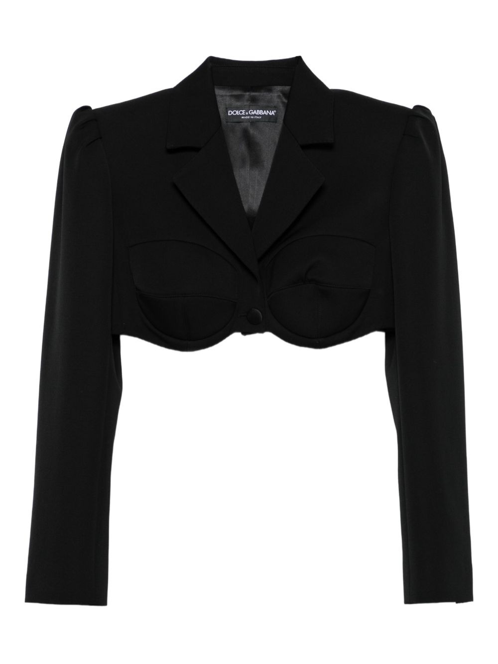 cropped bustier jacket Highlights - Black - Virgin wool - Long sleeves - Notched lapel - Button fastening - Bustier bodice Made in Italy Composition Outer: Virgin Wool 100% Lining: Silk 92%, Elastane 8% SIZE & FIT Model measurements Height 5 ft 11 in(1.8 m) Bust/Chest 31.49 in(80 cm) Hips 36.61 in(93 cm) Waist 24.4 in(62 cm) Washing instructions Read Manufacturer Guidelines