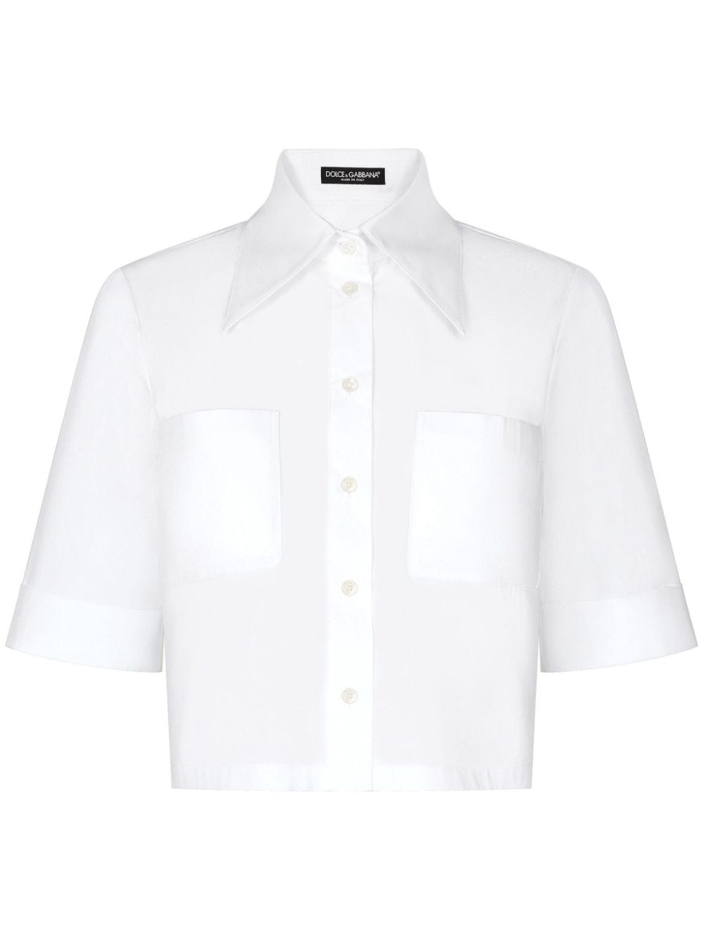 cropped cotton shirt Highlights - Optical white - Cotton - Straight-point collar - Front button fastening - Short sleeves - Two chest patch pockets - Cropped - Straight hem Made in Italy Composition Cotton 100% SIZE & FIT FittingInformation Designed for a boxy fit, intended for a loose fit throughout Cropped in length