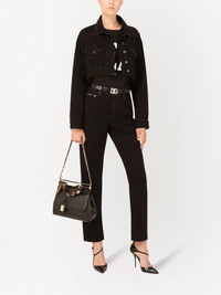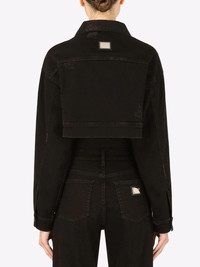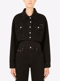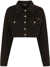 cropped denim jacket black cotton-blend cropped classic collar front button fastening front flap pockets long sleeves Made in Italy Composition Outer: Cotton 98%, Spandex/Elastane 2%
