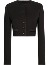 cropped jacket Highlights - Black - Front button fastening - Buttoned cuffs - Dart detailing - Faux pocket detail Made in Italy Composition Lining: Silk 100% Outer: Virgin Wool 93%, Silk 5%, Polyester 2%