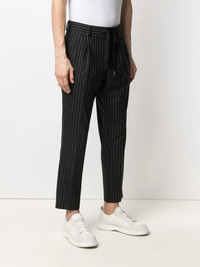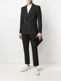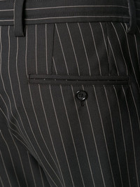 cropped pinstripe trousers A classic pattern with a modern twist. Crafted from soft virgin wool, these Dolce & Gabbana trousers boast a timeless pinstripe pattern and a cropped leg for a bold touch. You'll want to wear them every day. Made in Italy Composition Virgin Wool 100% SIZE & FIT Model measurements Height 6 ft 2 in(1.89 m) Bust/Chest 37.79 in(96 cm) Hips 37 in(94 cm) Waist 29.92 in(76 cm) Measurement FRONT RISE 11.81 in(30 cm) INSIDE LEG 28.34 in(72 cm) Hem Width 6.69 in(17 cm) WAIST 36.22 in(92 cm) Washing instructions Dry Clean Only