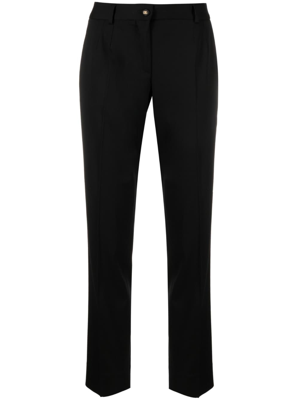 cropped straight-leg trousers Spun from a virgin wool blend, these cropped trousers from Dolce & Gabbana are cut to a straight-leg silhouette, reflecting the label’s lean toward timeless staples. Highlights - Black - Virgin wool blend - Cropped leg - Straight leg - Belt loops - Logo-embossed buttons - Front button fastening - Rear welt pocket Made in Italy Composition Virgin Wool 97%, Spandex/Elastane 3% SIZE & FIT Model measurements Height 5 ft 10 in(1.78 m) Bust/Chest 29.92 in(76 cm) Hips 34.64 in(88 cm) Waist 23.62 in(60 cm) FittingInformation Designed for a tapered fit, these trousers allow for a close fit at the waist and a loose unrestricted fit over the leg with a closer fit towards the ankle Made from a midweight non-stretch fabric This piece fits true to size – take your usual size Washing instructions Dry Clean Only