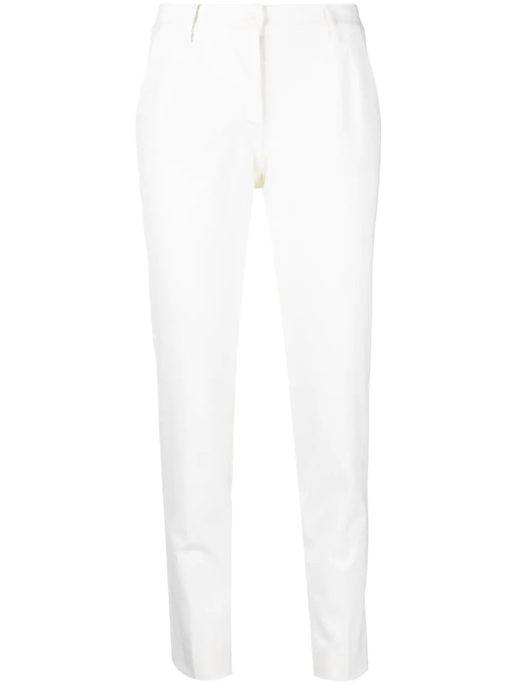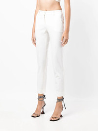 cropped tailored trousers white stretch wool-blend high waist belt loops front button and zip fastening two side slash pockets two rear welt pockets pressed crease slim cut cropped leg Made in Italy Composition Wool 92%, Polyamide 6%, Elastane 2% SIZE & FIT Model measurements Height 5 ft 10 in(1.77 m) Bust/Chest 31.49 in(80 cm) Hips 35.43 in(90 cm) Waist 25.19 in(64 cm) FittingInformation This piece fits true to size. We recommend you get your regular size Cut for a slim fit Made with a mid-weight stretch fabric Washing instructions Dry Clean Only