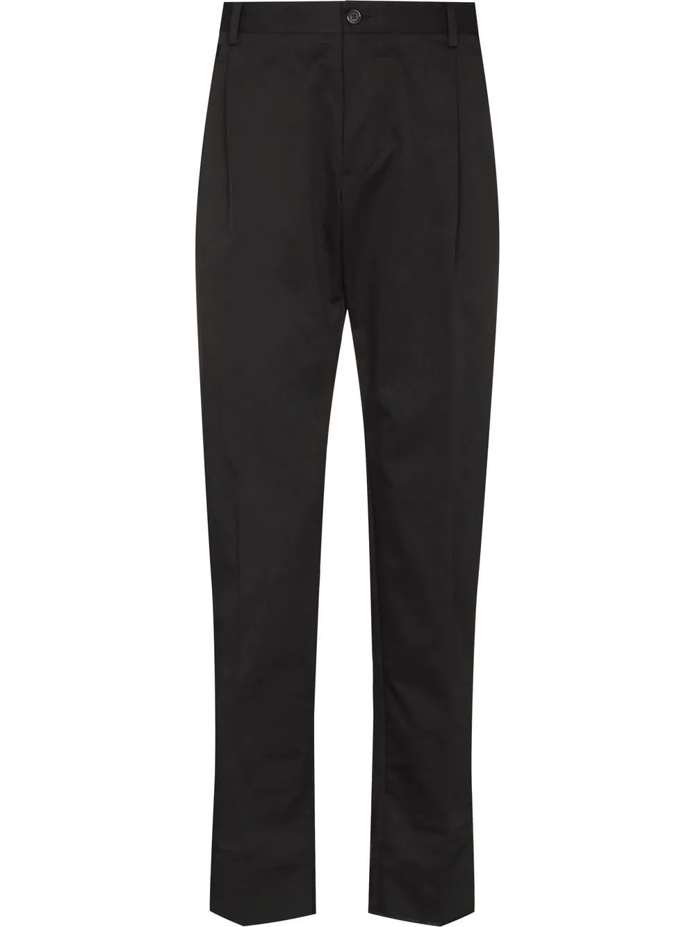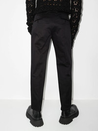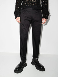 cropped tapered trousers Highlights - Black - Cotton blend - Cropped - Tapered leg - Front button and zip fastening - Mid-rise - Two side slit pockets - Side flap pocket - Two rear welt pockets - Belt loops Made in Italy Composition Cotton 97%, Spandex/Elastane 3% SIZE & FIT Model measurements Height 6 ft 0 in(1.83 m) Bust/Chest 38.97 in(99 cm) Hips 37 in(94 cm) Waist 28.74 in(73 cm) FittingInformation This piece fits true to size. We recommend you get your regular size Cut for a slim fit Made with a mid-weight non-stretch fabric Washing instructions Dry Clean Only