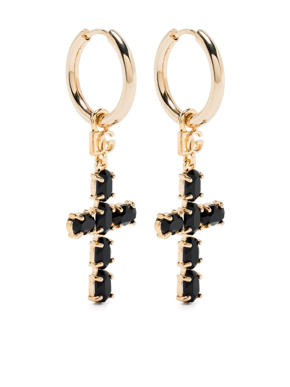 cross-charm drop earrings Highlights - Gold-tone/black - Polished finish - Small hoop design - Drop design - Cross charm - Hinge-pin fastening - For pierced ears - These earrings come as a pair. Made in Italy SIZE & FIT Model measurements Height 5 ft 11 in(1.8 m) Bust/Chest 31.49 in(80 cm) Hips 35.82 in(91 cm) Waist 24.8 in(63 cm) Measurement HEIGHT 1.88 in(4.8 cm) Weight (single earring) 3 g(3 g) WIDTH 0.59 in(1.5 cm)